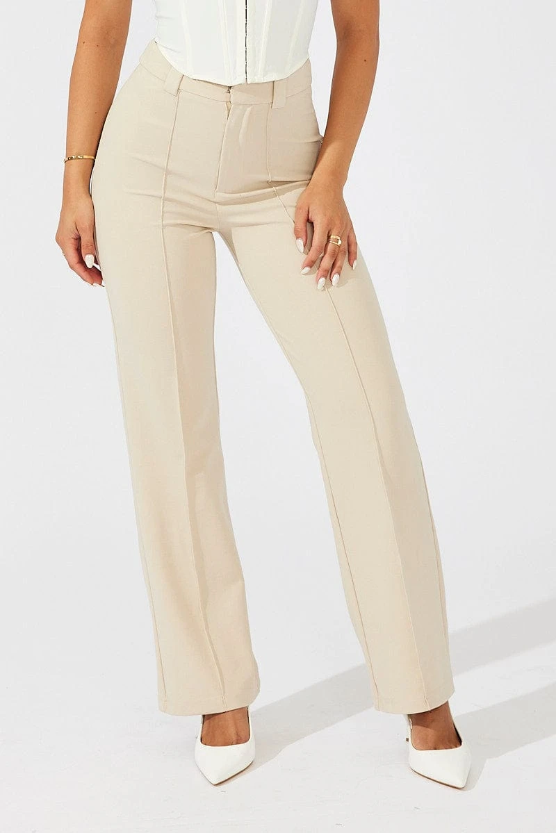 Beige Slim Pants High Rise Workwear