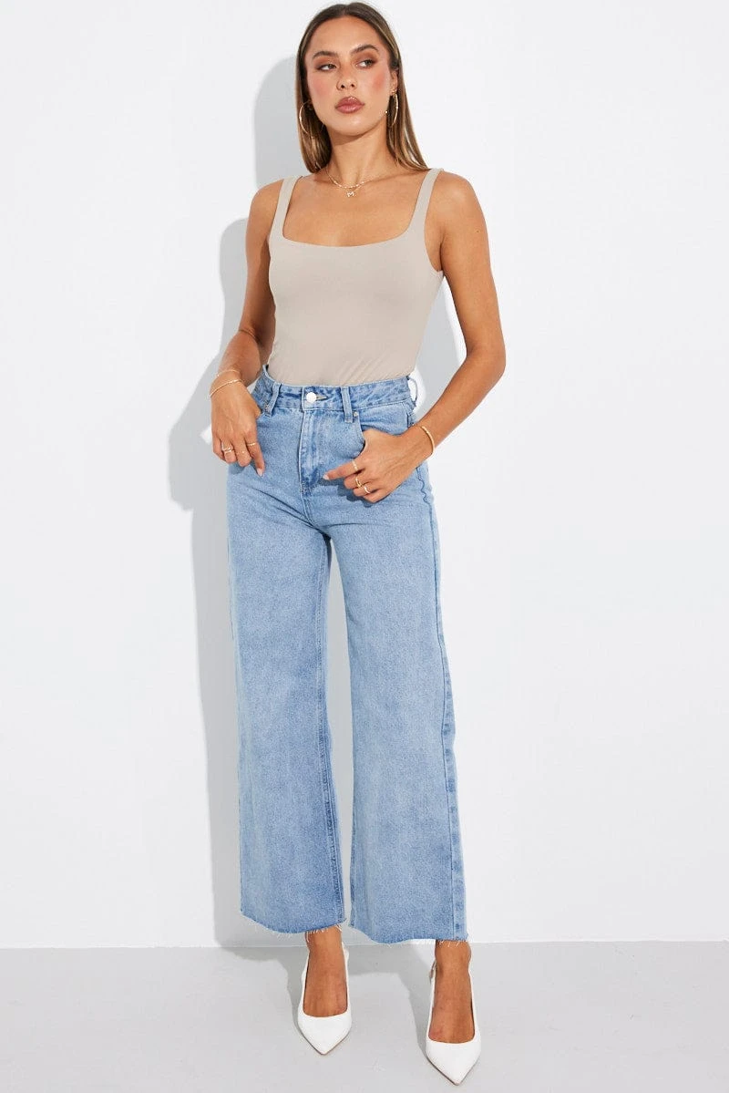 Beige Supersoft Bodysuit Sleeveless Square-Cut Neck