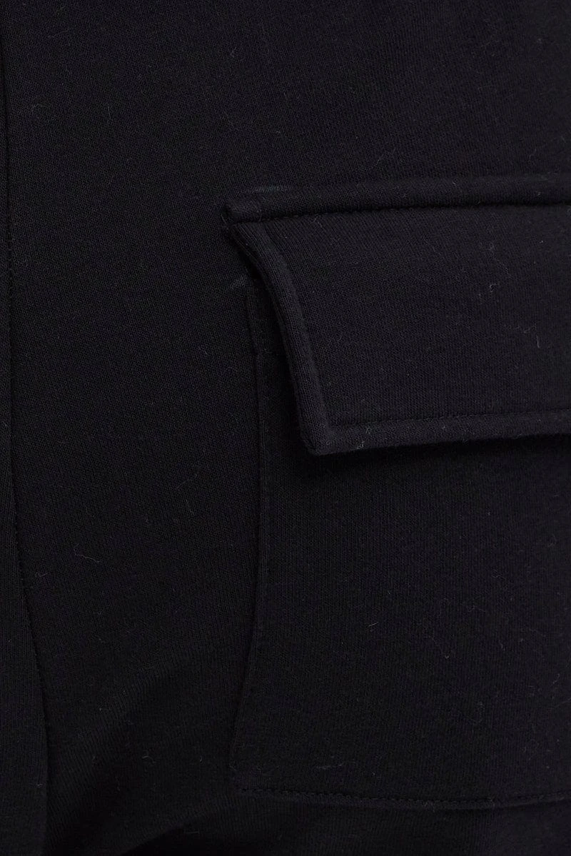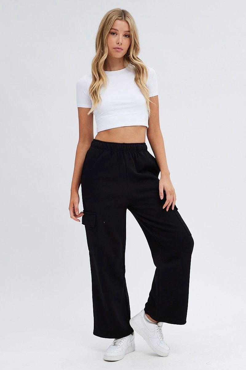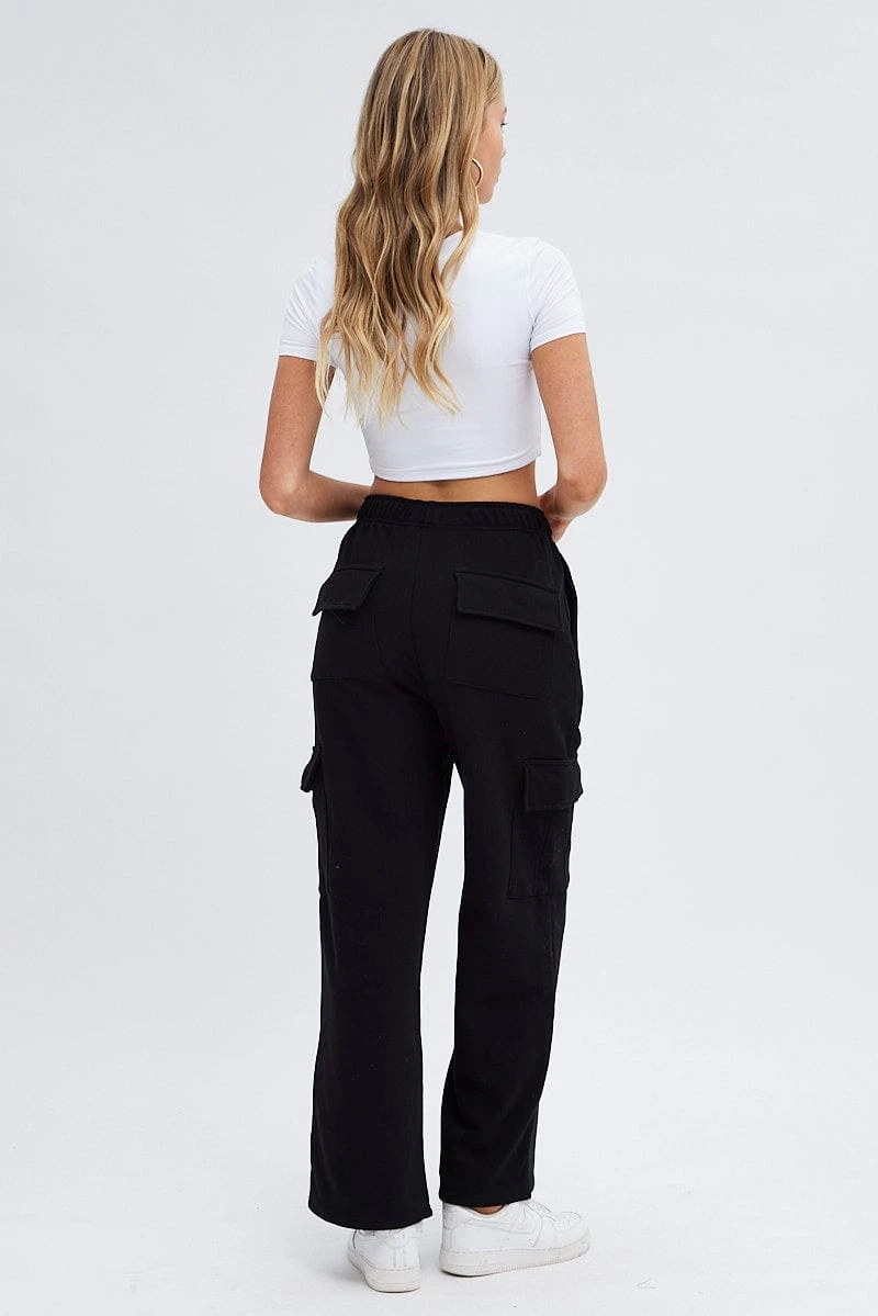 Black Cargo Track Pants High Rise