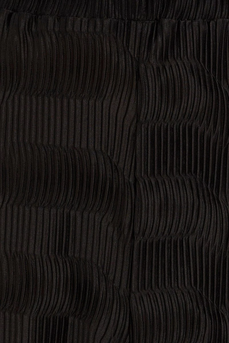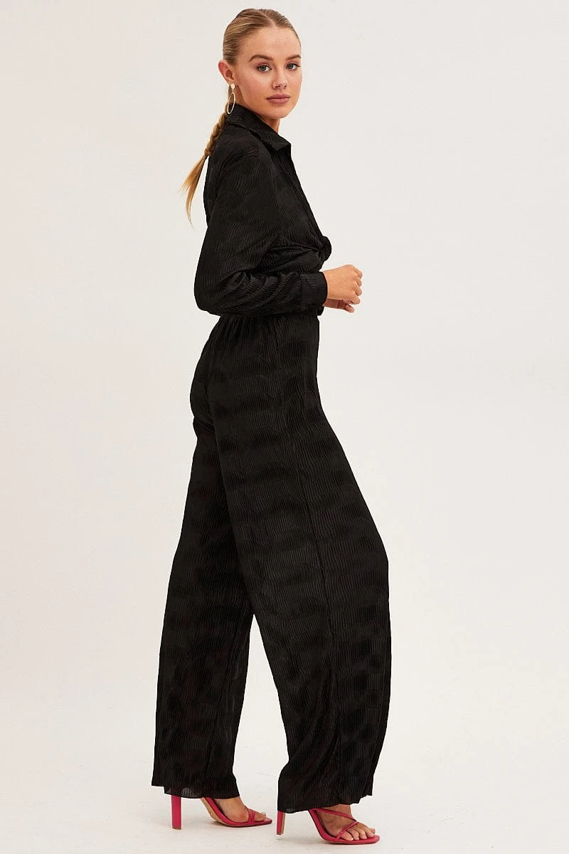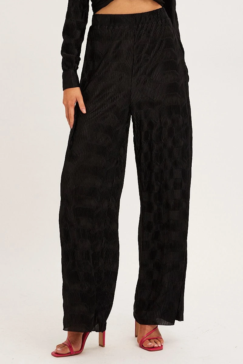 Black Plisse Pants Wide Leg