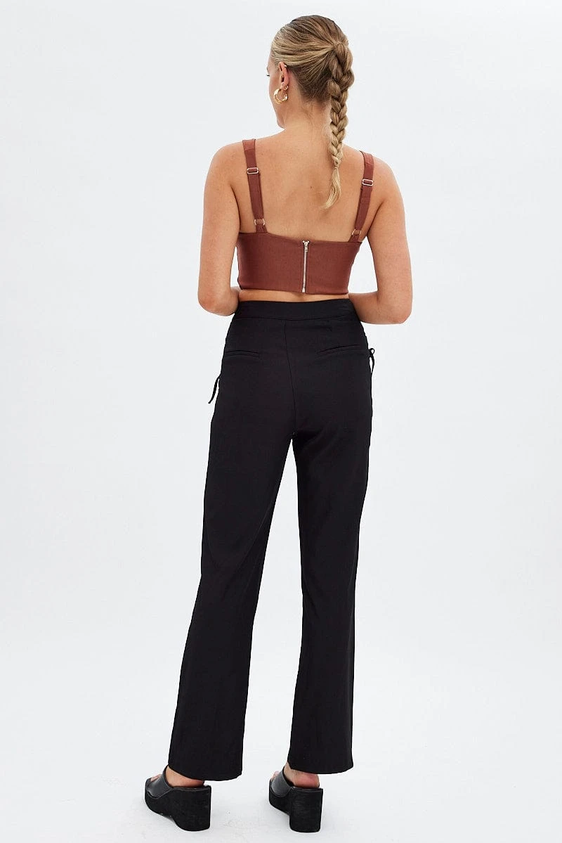 Black Straight Leg Pants High Rise Tailored Lace Up