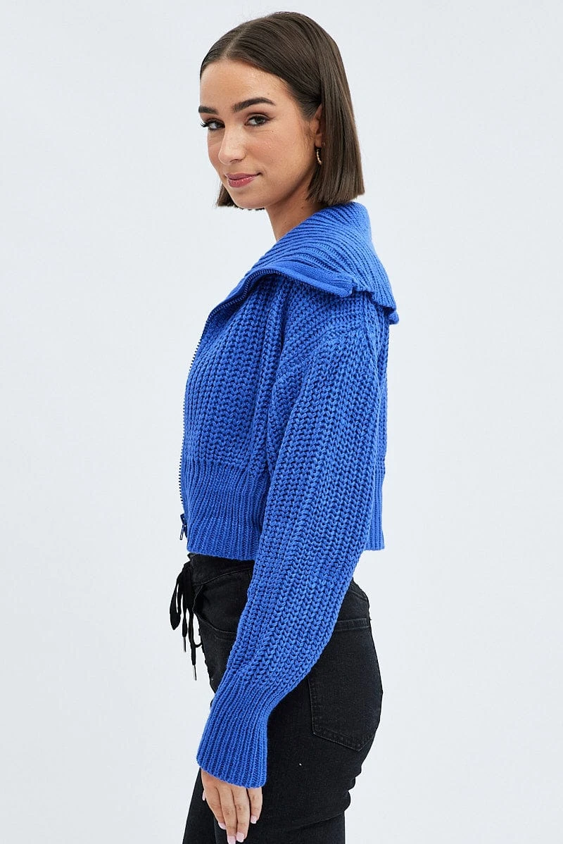 Blue Zip Up Crop Cardigan