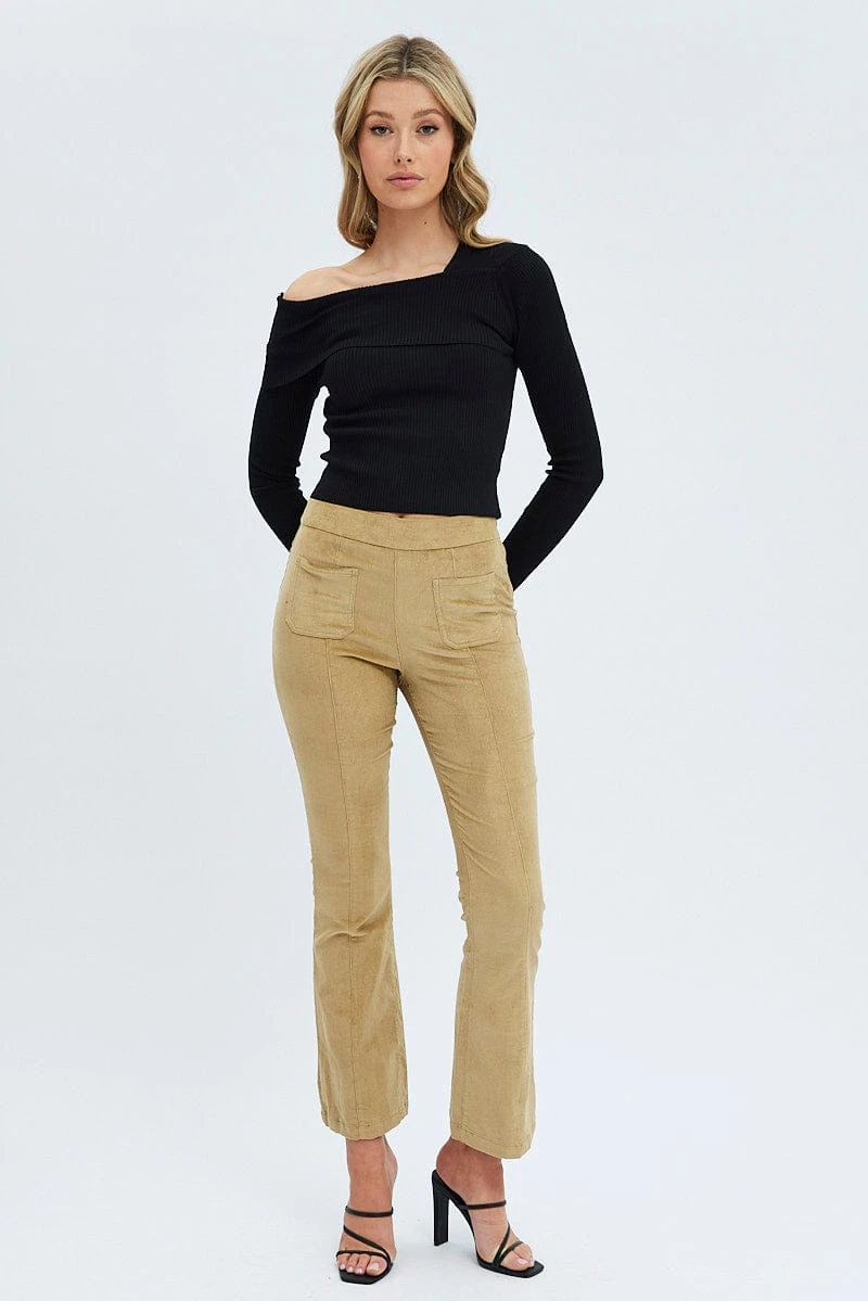 Be the first to review “Camel Flare Leg Pants High Rise Corduroy” Cancel reply