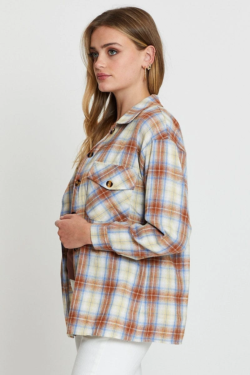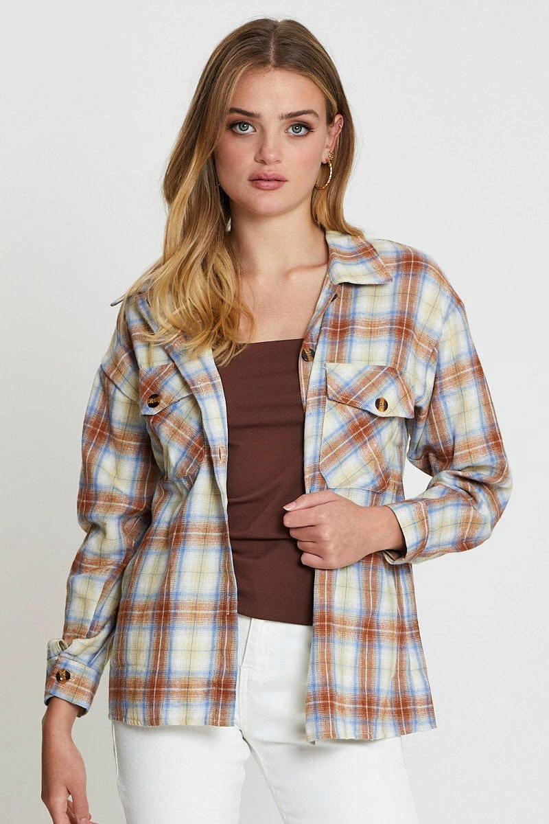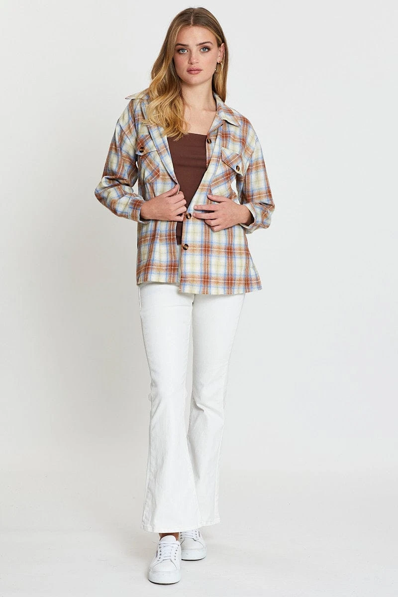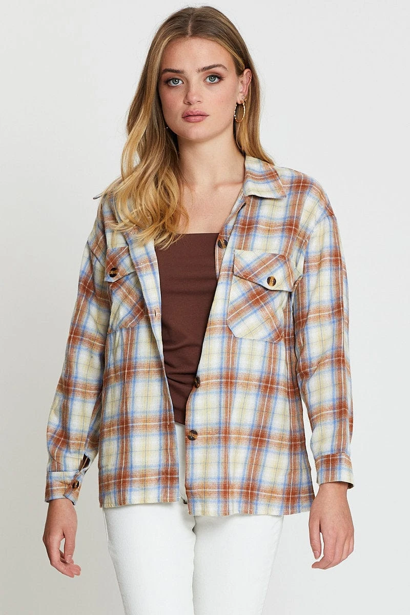 Features: Check Print, Relaxed Silhouette, Front Pockets, Button Up