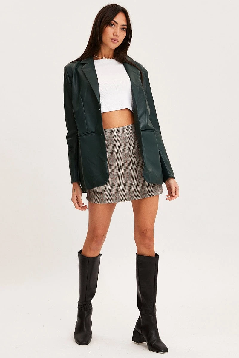 Features: Collared Neckline, Faux Pockets, Button Cuffed Sleeves, Pu Faux Leather