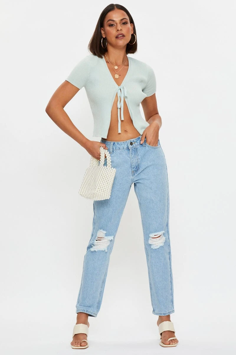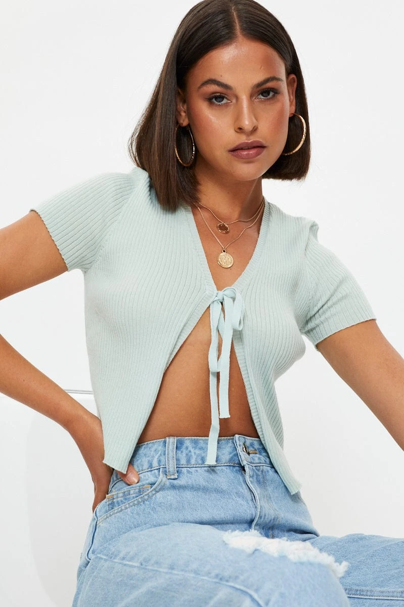 Features: Knitted, Front Tie Up, Soft Material, Short Sleeves