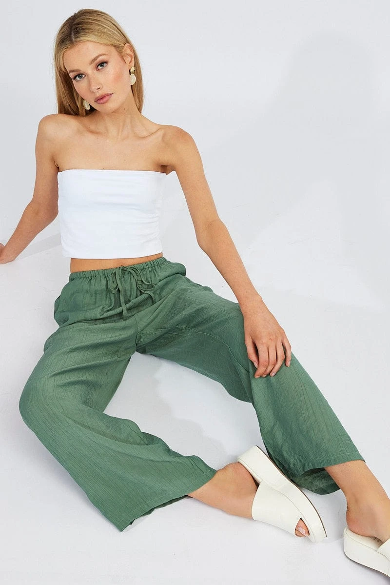 Green Wide Leg Pants Textured Fabric