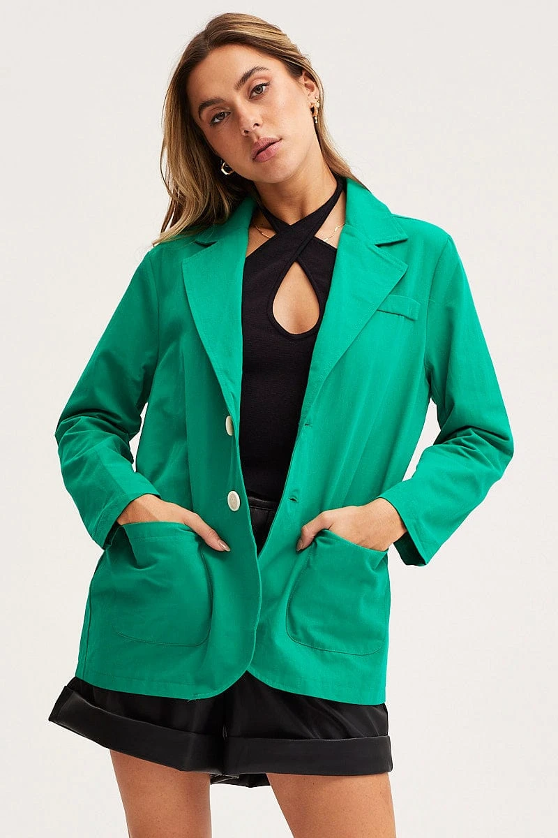 Features: Pockets, Contrast Buttons, Lightweight, Relaxed Silhouette