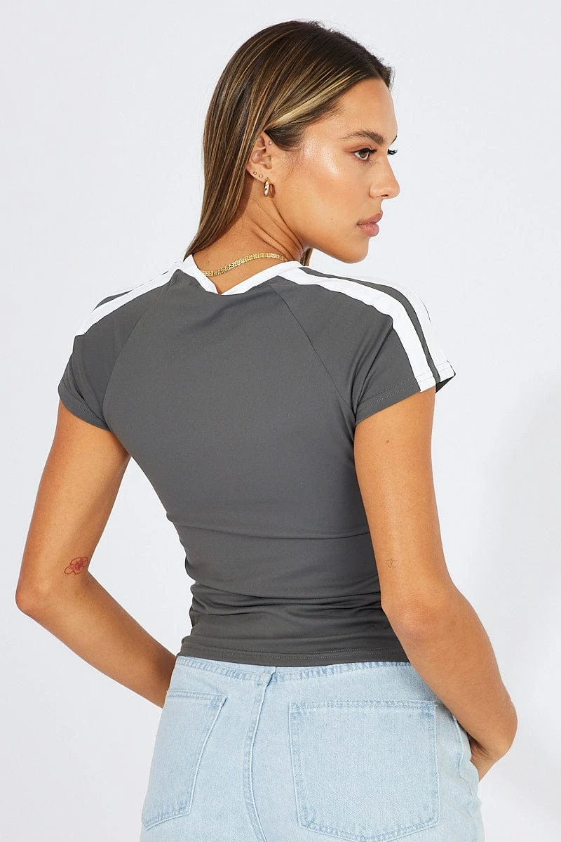 Grey Supersoft Top Short Sleeve Stripe