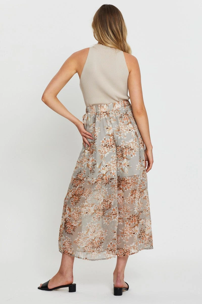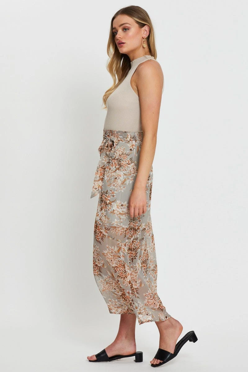 Features: Floral Print, Wide Leg, Waist Tie, Elasticised Waistband