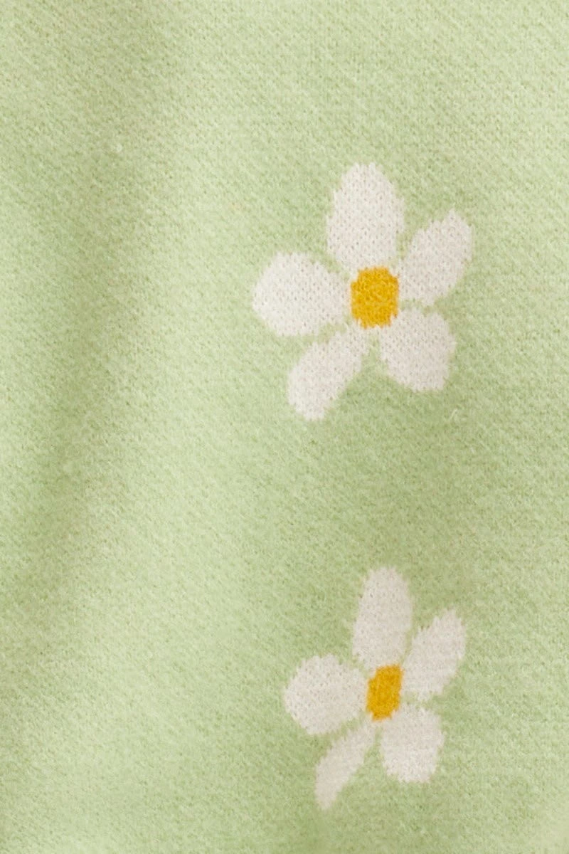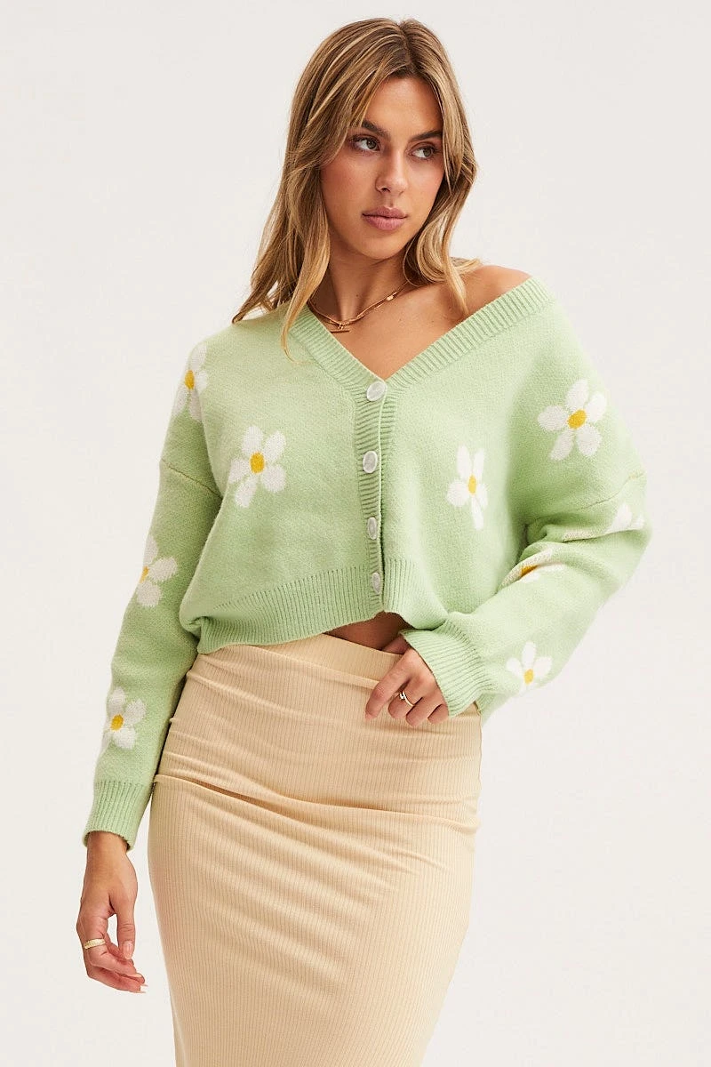 Features: Oversized Fit, Flower Graphic, Knitted, Button Up