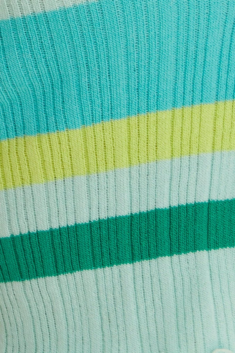 Stripe Knit Cardigan Short Sleeve Crop V-Neck